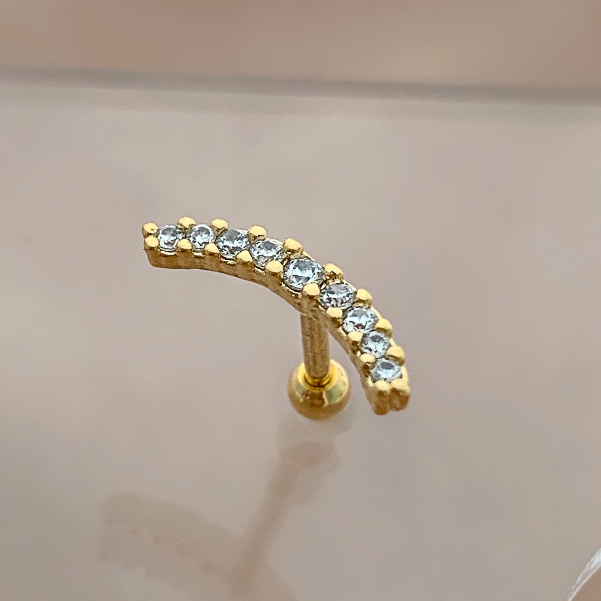 PIERCING CARTILAGEM FILEIRA ZIRCÔNIAS CURVADA 7MM HASTE AÇO 316L FOLHEADO A OURO 18K SEMIJOIA PARA ATUALIZAÇÃO⭐️