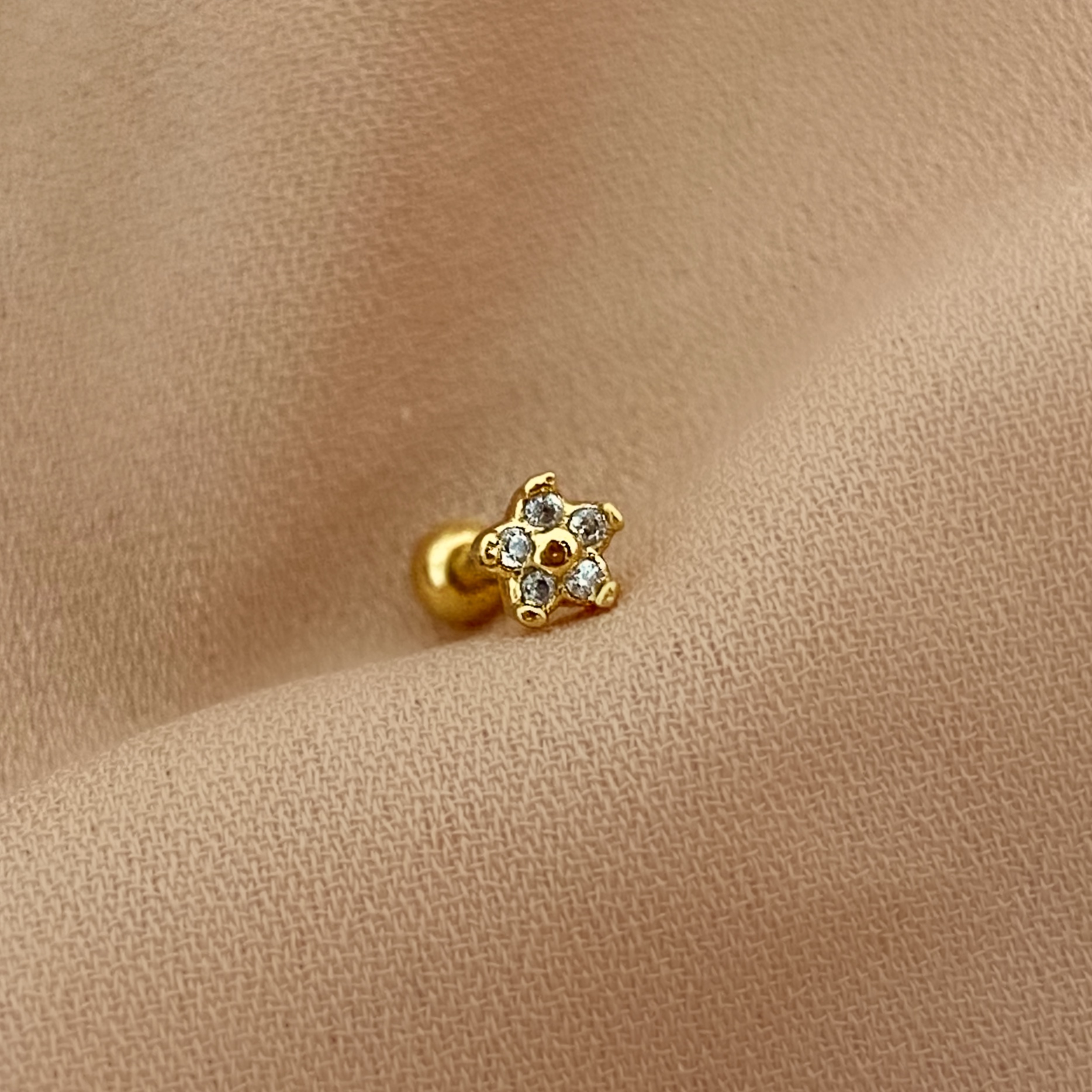 PIERCING CARTILAGEM/TRÁGUS MINI FLOR ZIRCÔNIAS 6MM HASTE AÇO 316L FOLHEADO A OURO 18K SEMIJOIA PARA ATUALIZAÇÃO⭐️