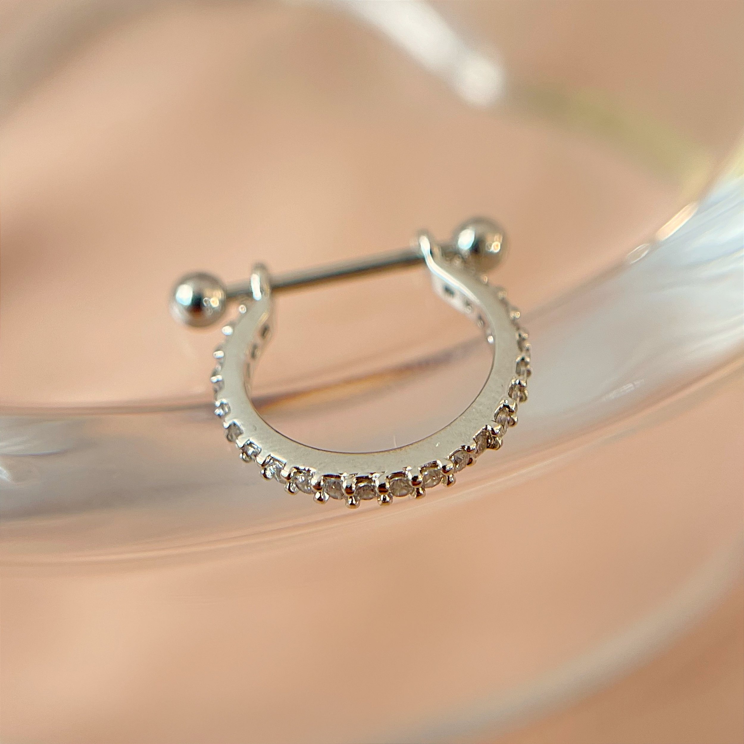 PIERCING CONCH FILEIRA ÚNICA ZIRCÔNIAS 8MM FOLHEADO A RÓDIO SEMIJOIA PARA ATUALIZAÇÃO⭐️