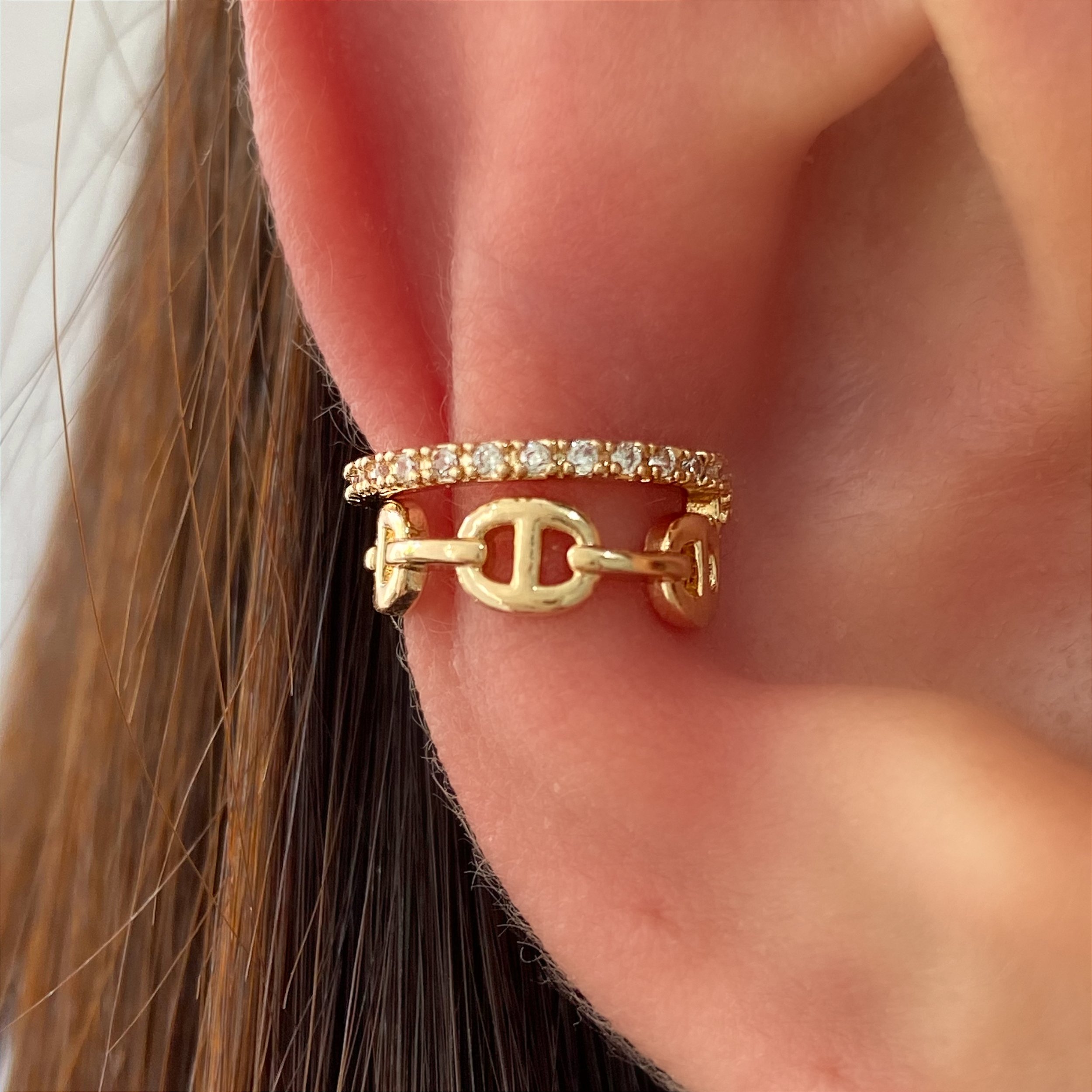 PIERCING FAKE CORRENTE FIO ZIRCÔNIAS DOURADO BIJU
