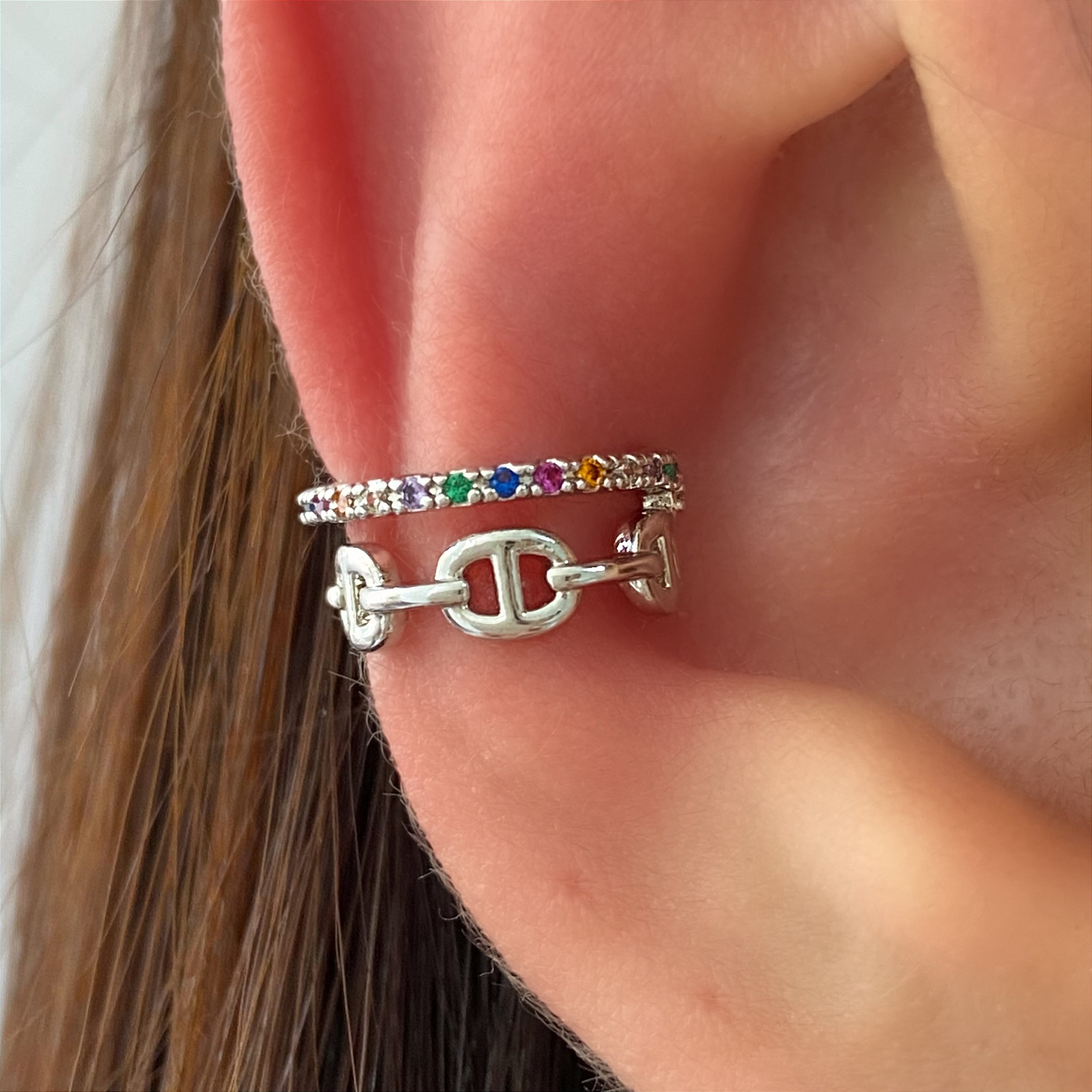 PIERCING FAKE CORRENTE FIO ZIRCÔNIAS PRATEADO BIJU