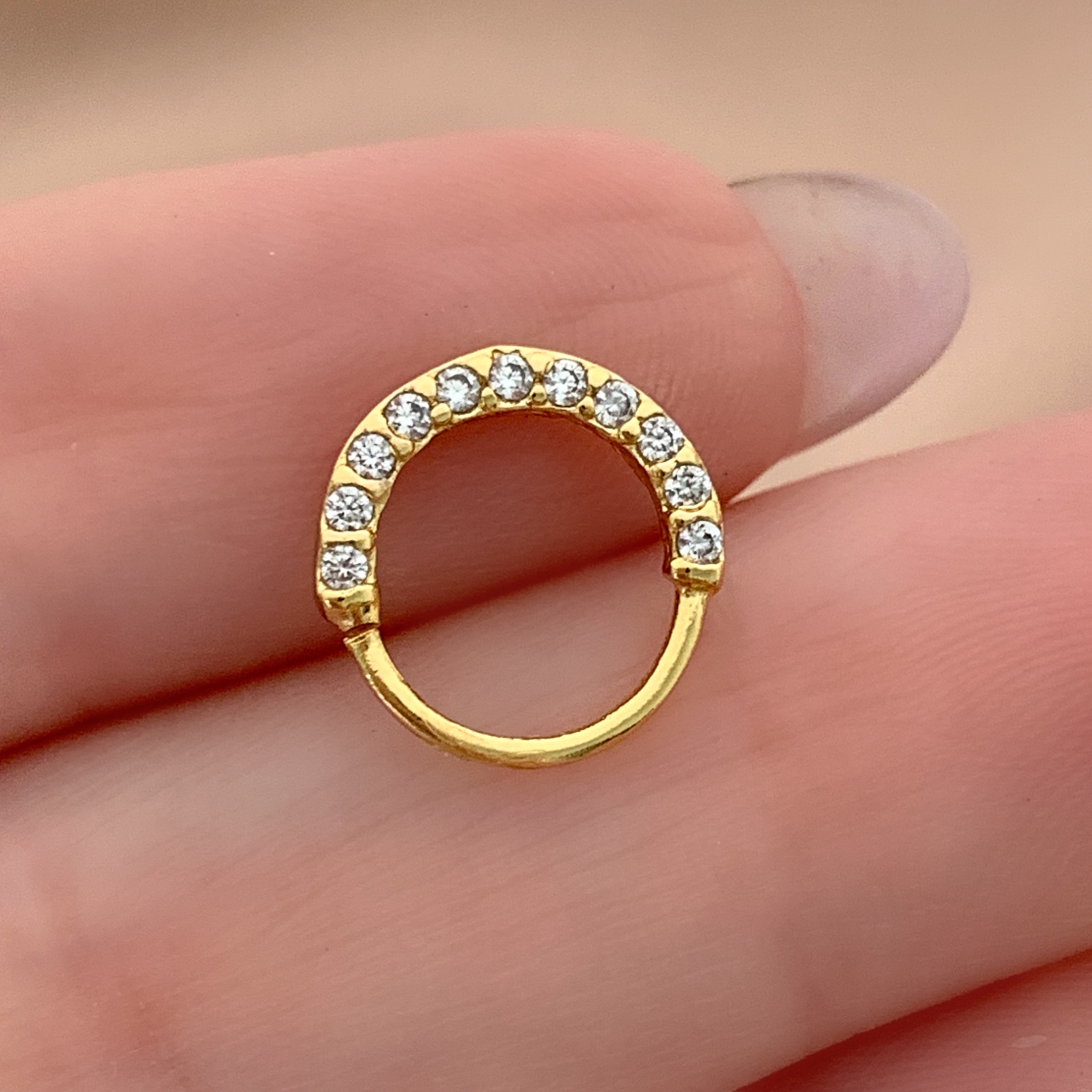 PIERCING NARIZ / SEPTO ARGOLINHA ZIRCÔNIAS FRONTAIS 8MM FOLHEADO A OURO 18K SEMIJOIA PARA ATUALIZAÇÃO⭐️