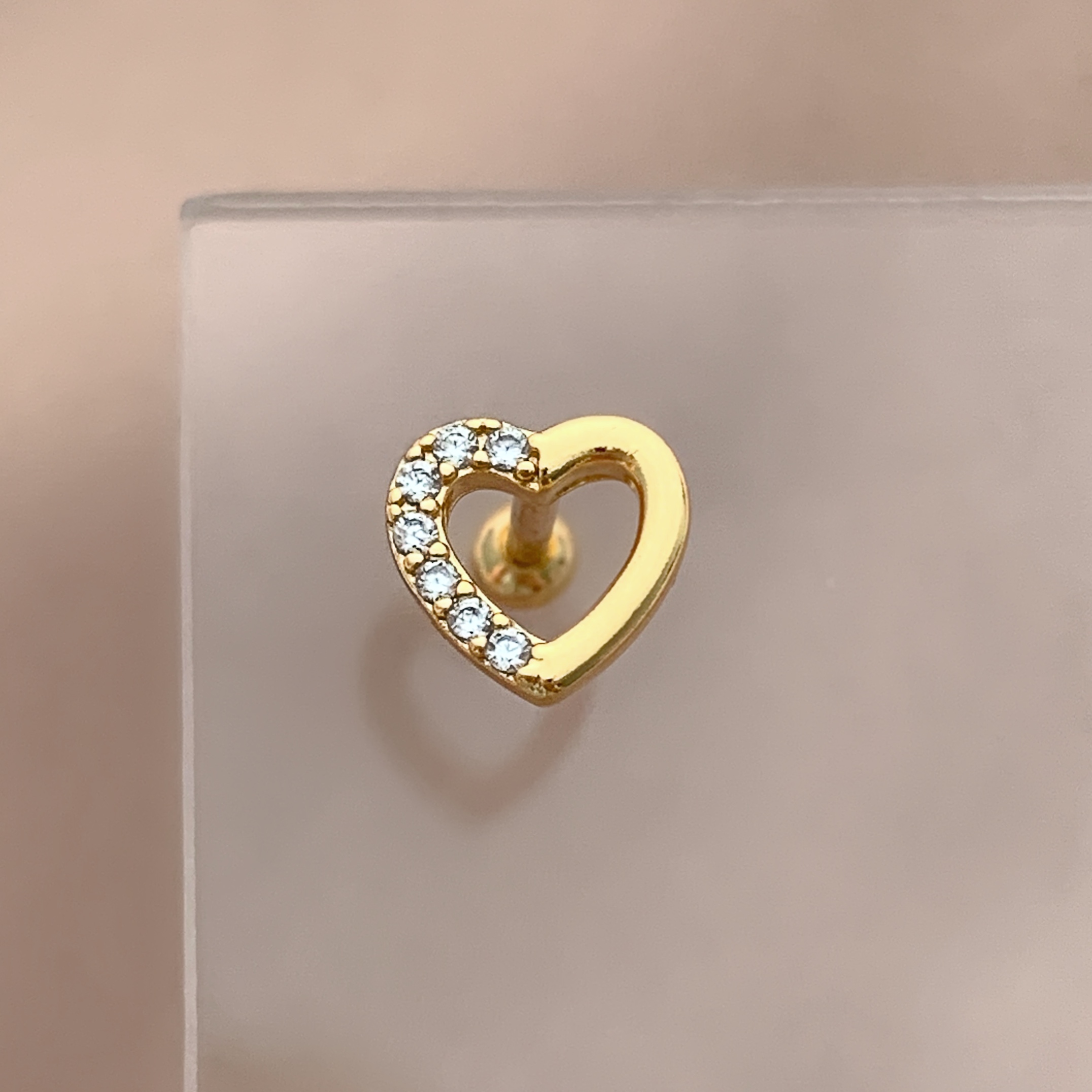 PIERCING TRÁGUS/CARTILAGEM CORAÇÃO VAZADO ZIRCÔNIAS 7MM HASTE AÇO 316L FOLHEADO A OURO 18K SEMIJOIA PARA ATUALIZAÇÃO⭐️