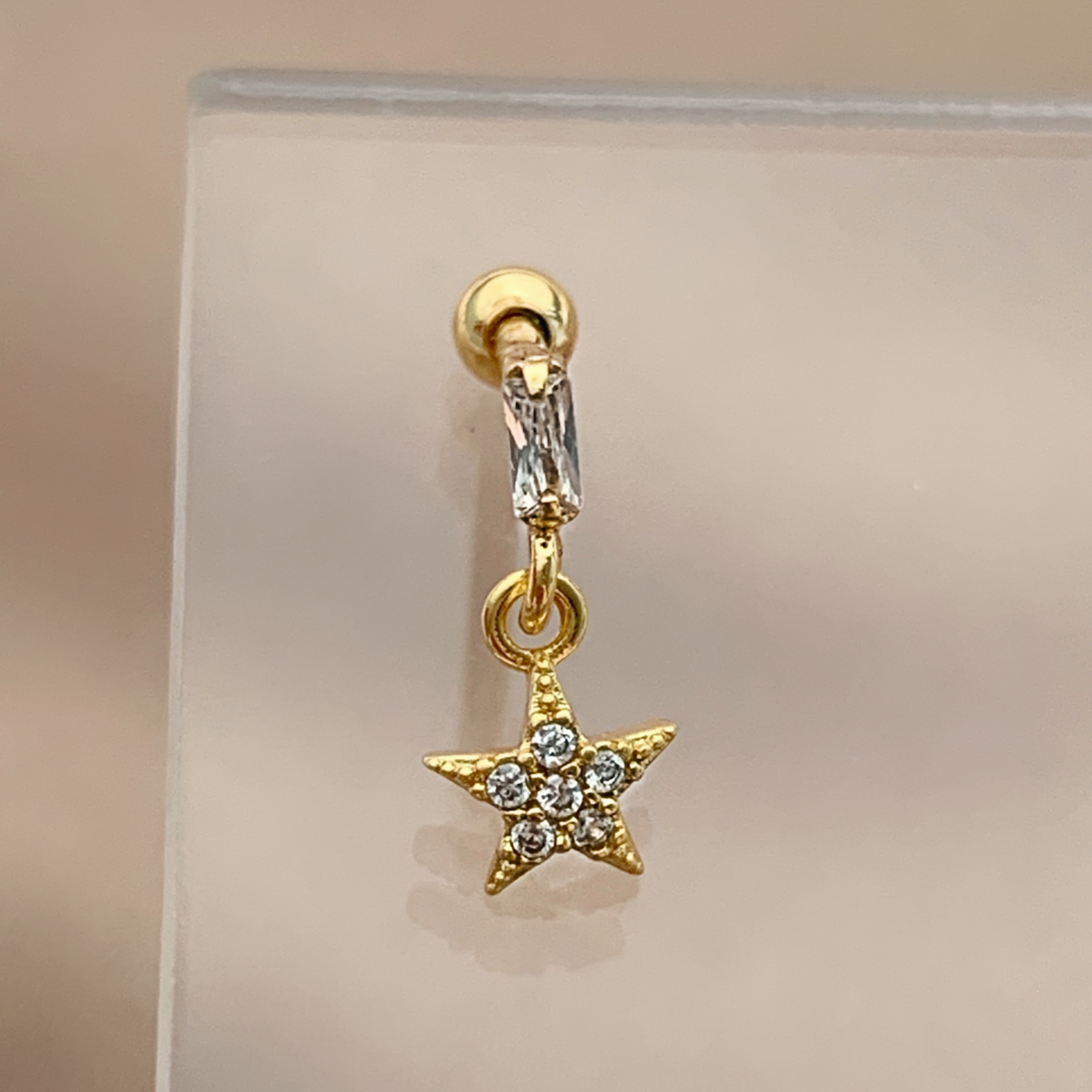 PIERCING TRÁGUS / CARTILAGEM ESTRELA PENDENTE 8MM HASTE AÇO 316L FOLHEADO A OURO 18K SEMIJOIA PARA ATUALIZAÇÃO⭐️