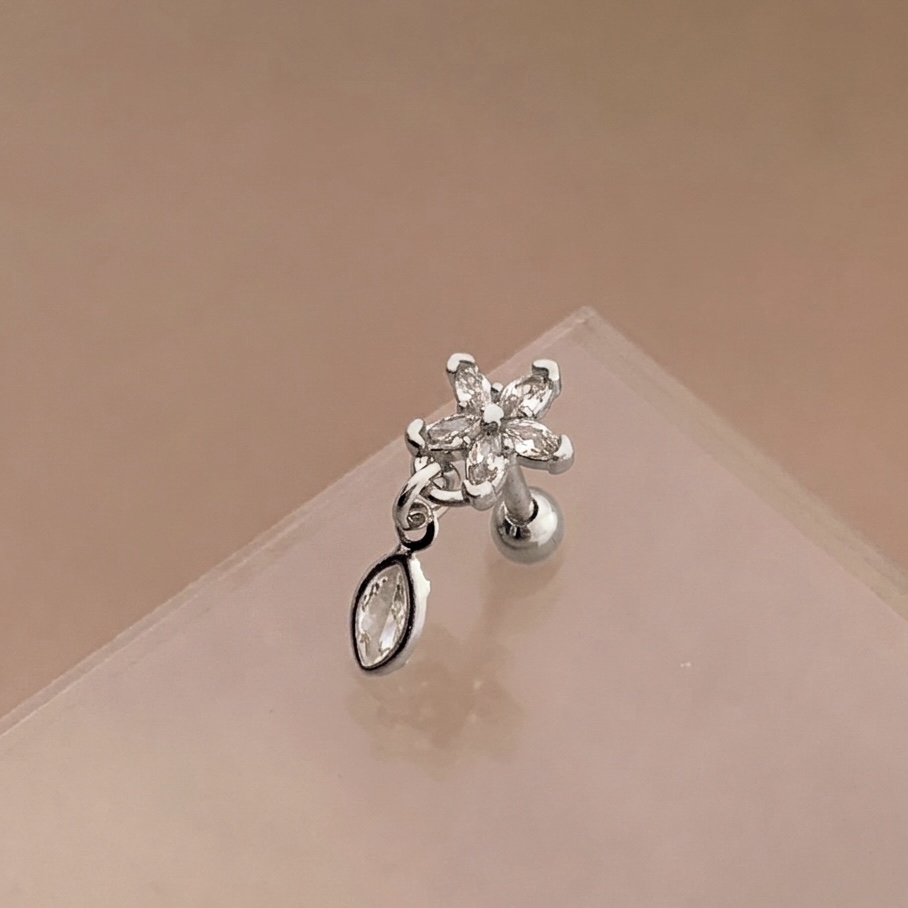 PIERCING TRÁGUS / CARTILAGEM FLOR PINGENTE ZIRCÔNIAS 6MM HASTE AÇO 316L FOLHEADO A RÓDIO SEMIJOIA PARA ATUALIZAÇÃO⭐️