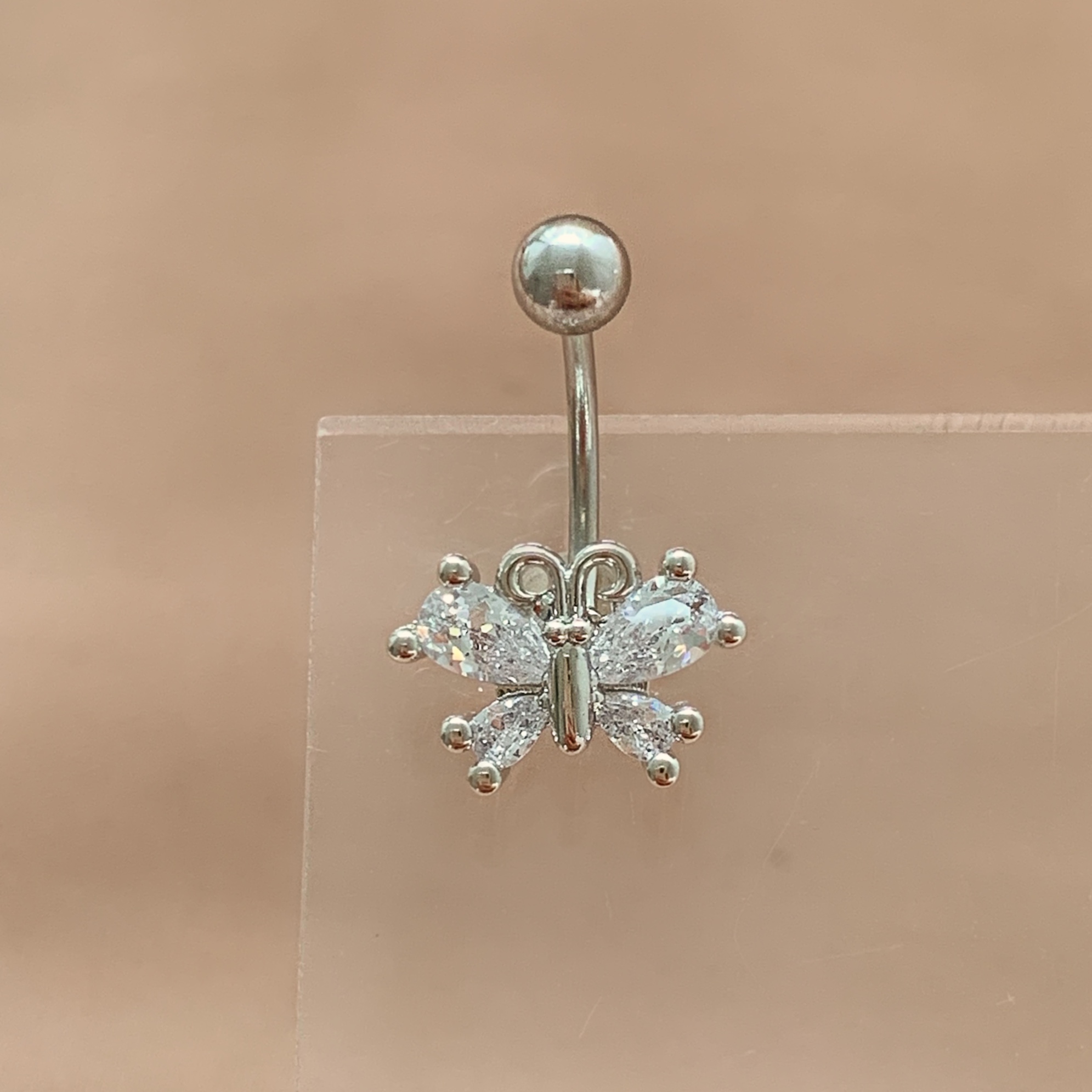 PIERCING UMBIGO BORBOLETA PEDRAS ZIRCÔNIAS 10MM HASTE AÇO 316L FOLHEADO A RÓDIO SEMIJOIA PARA ATUALIZAÇÃO⭐️