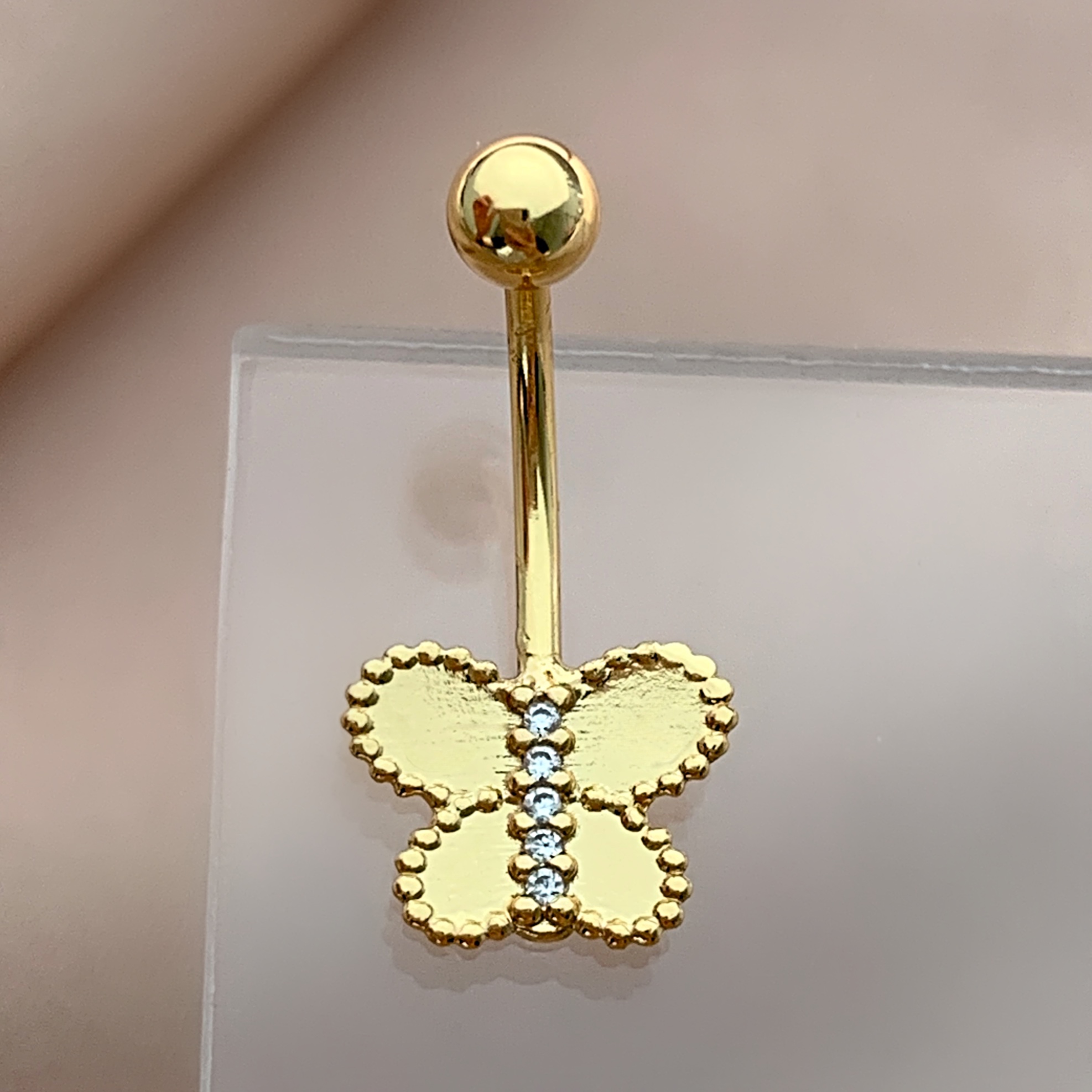PIERCING UMBIGO BORBOLRETA BORDA BOLINHAS FIO ZIRCÔNIAS 10MM AÇO 316L FOLHEADO A OURO 18K SEMIJOIA PARA ATUALIZAÇÃO⭐️