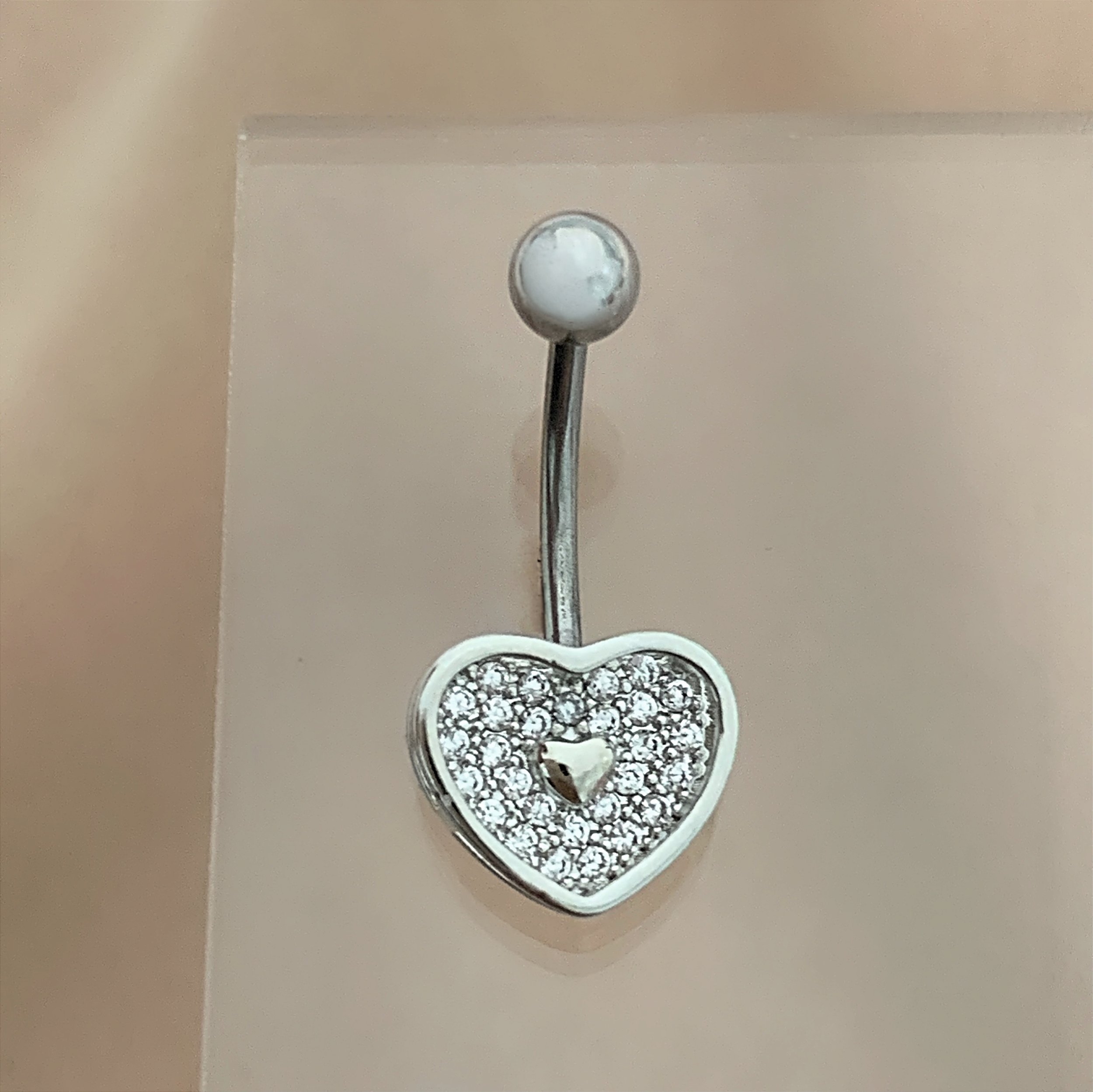 PIERCING UMBIGO CORAÇÃO FUNDO ZIRCÔNIAS 10MM AÇO 316L FOLHEADO A RÓDIO SEMIJOIA PARA ATUALIZAÇÃO⭐️