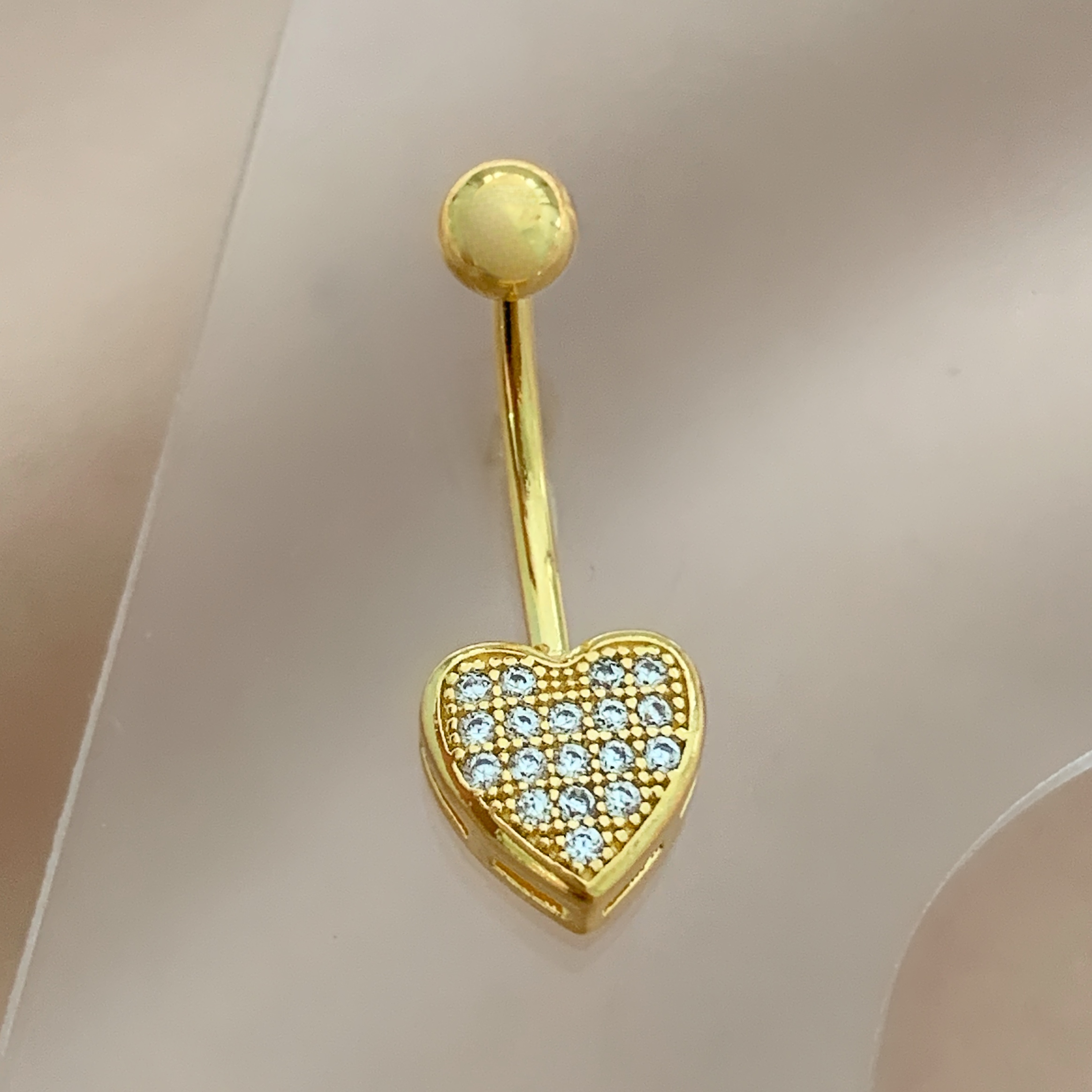 PIERCING UMBIGO CORAÇÃO MICRO ZIRCÔNIAS 10MM HASTE AÇO 316L FOLHEADO A OURO 18K SEMIJOIA PARA ATUALIZAÇÃO⭐️
