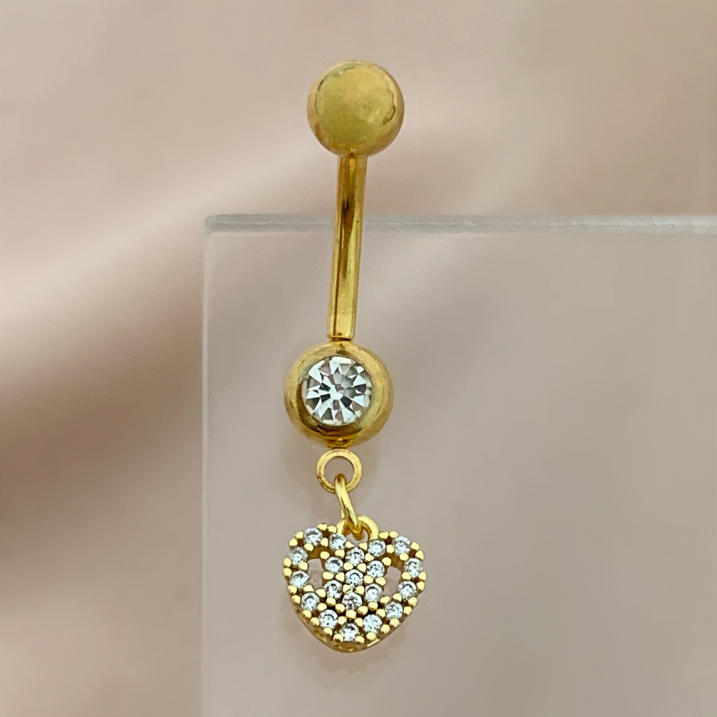PIERCING UMBIGO CORAÇÃO ZIRCÔNIAS DETALHADAS 10MM AÇO 316L FOLHEADO A OURO 18K SEMIJOIA PARA ATUALIZAÇÃO⭐️