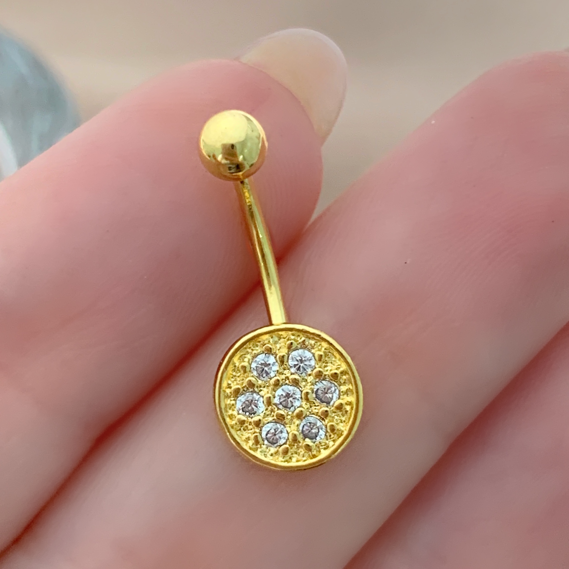 PIERCING UMBIGO HASTE AÇO 316L ESFERA ZIRCÔNIAS 10MM FOLHEADO A OURO 18K SEMIJOIA PARA ATUALIZAÇÃO⭐️