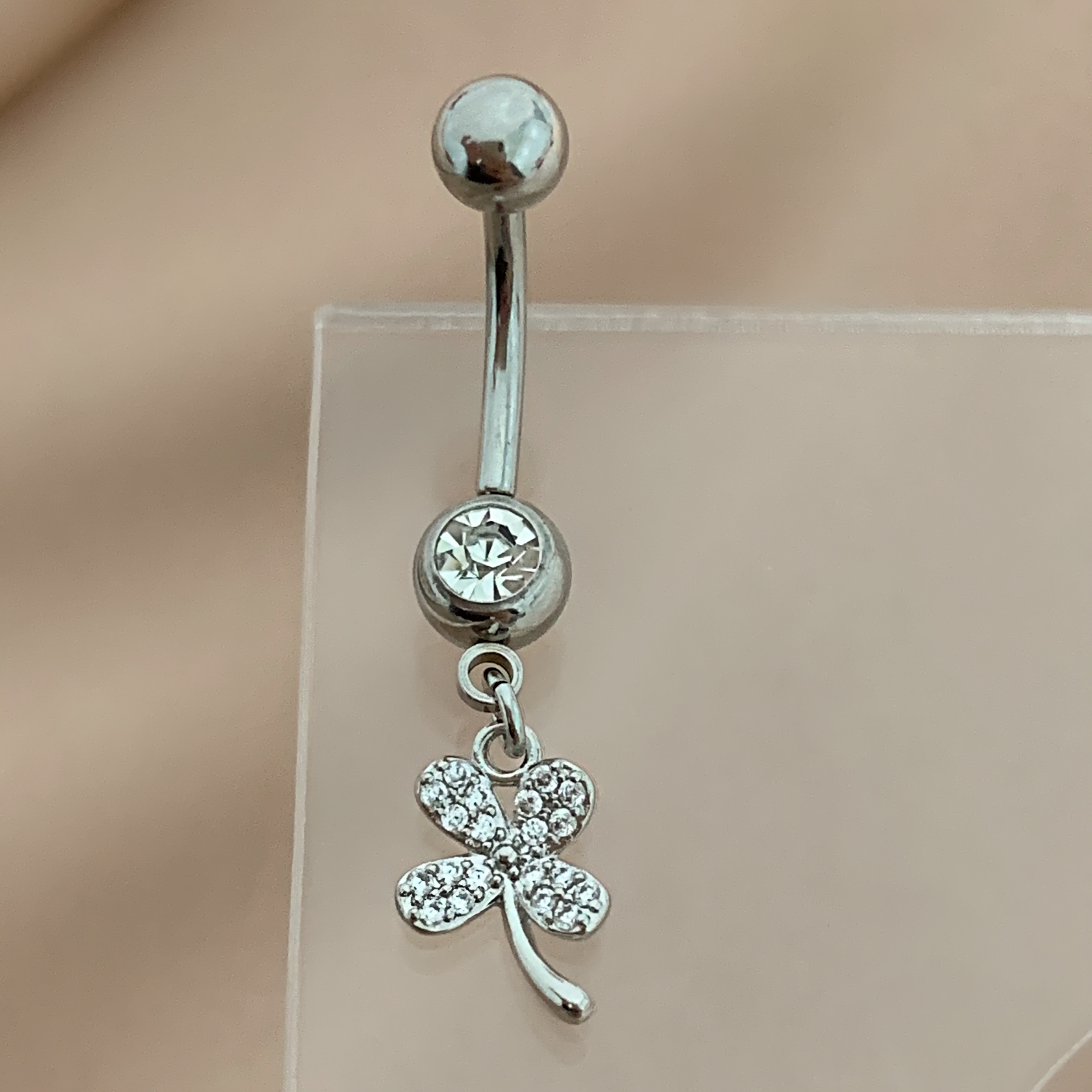 PIERCING UMBIGO PINGENTE FLOR ZIRCÔNIAS 10MM AÇO 316L FOLHEADO A RÓDIO SEMIJOIA PARA ATUALIZAÇÃO⭐️