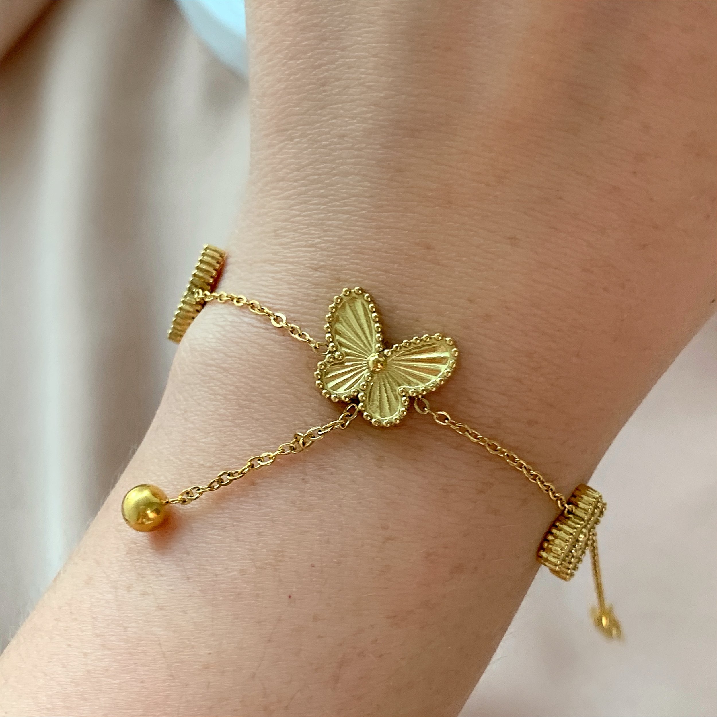 PULSEIRA BORBOLETA DESENHADA BOLINHA PENDENTE DOURADO AÇO 316L⭐️