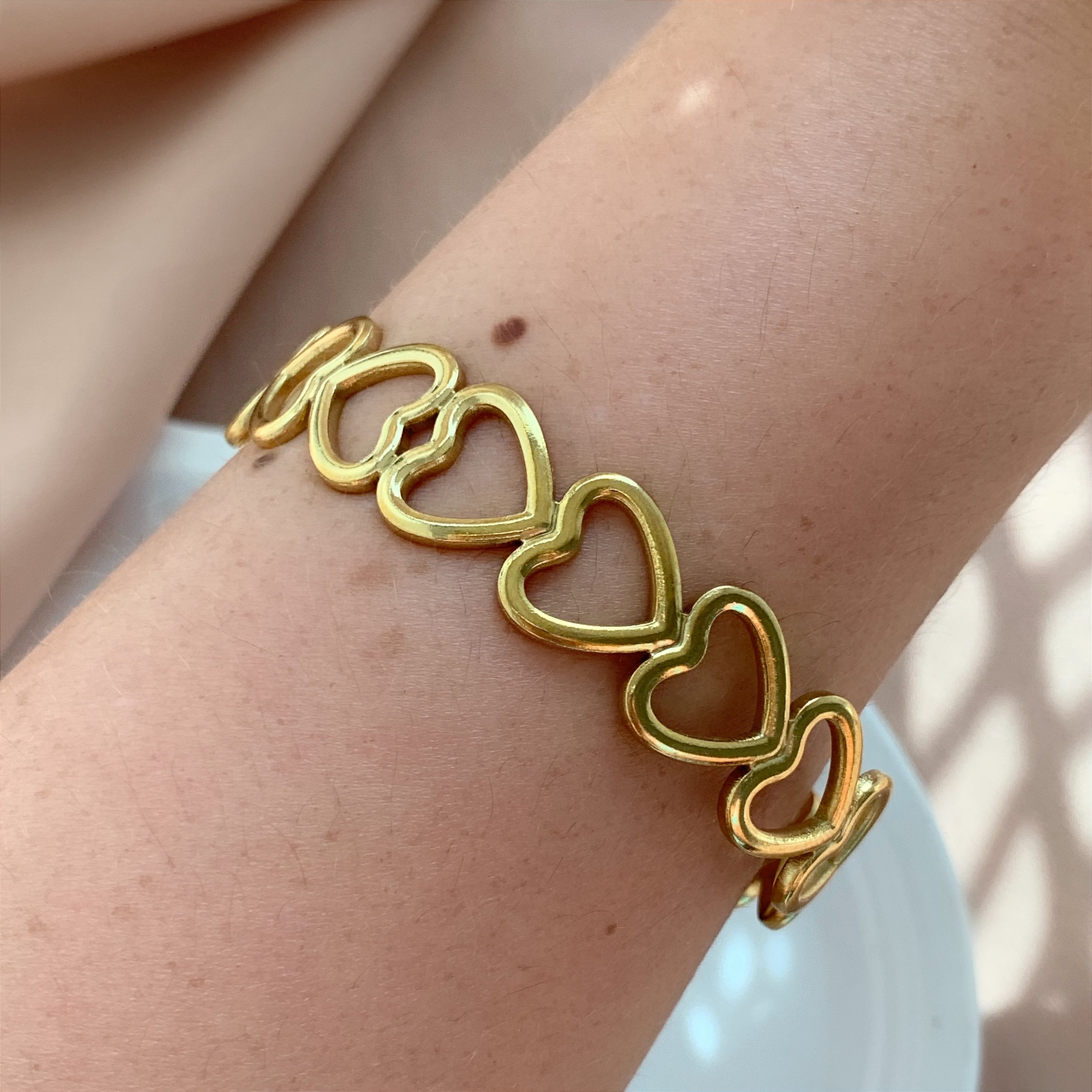 PULSEIRA / BRACELETE CORAÇÕES VAZADOS DOURADO AÇO 316L⭐️