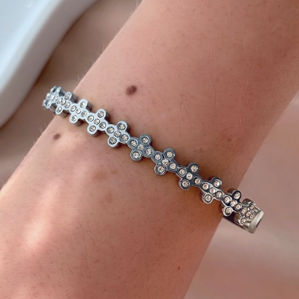 PULSEIRA / BRACELETE MINI TREVOS ZIRCÔNIAS AÇO 316L⭐️