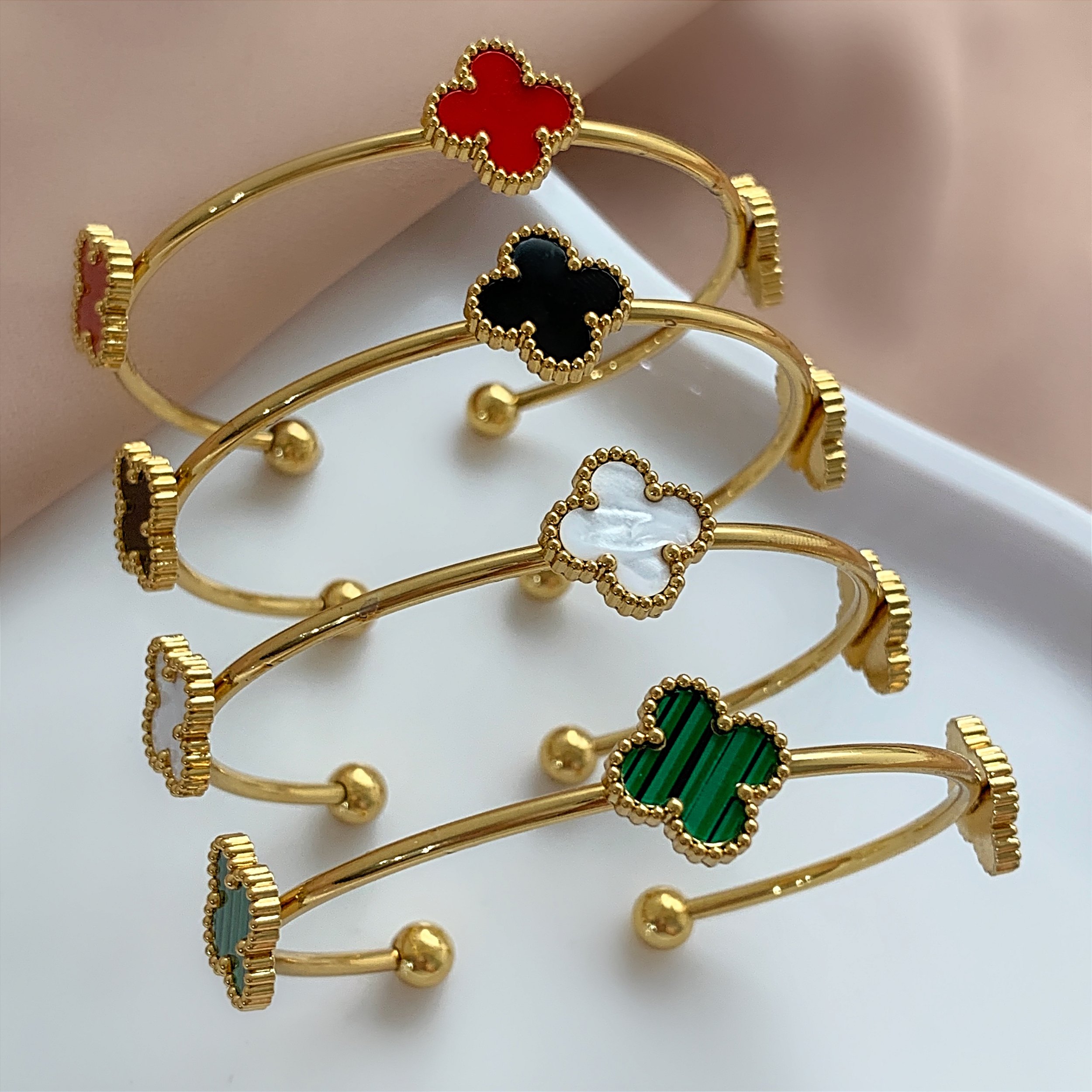 PULSEIRA / BRACELETE TREVO DOURADO AÇO 316L⭐️