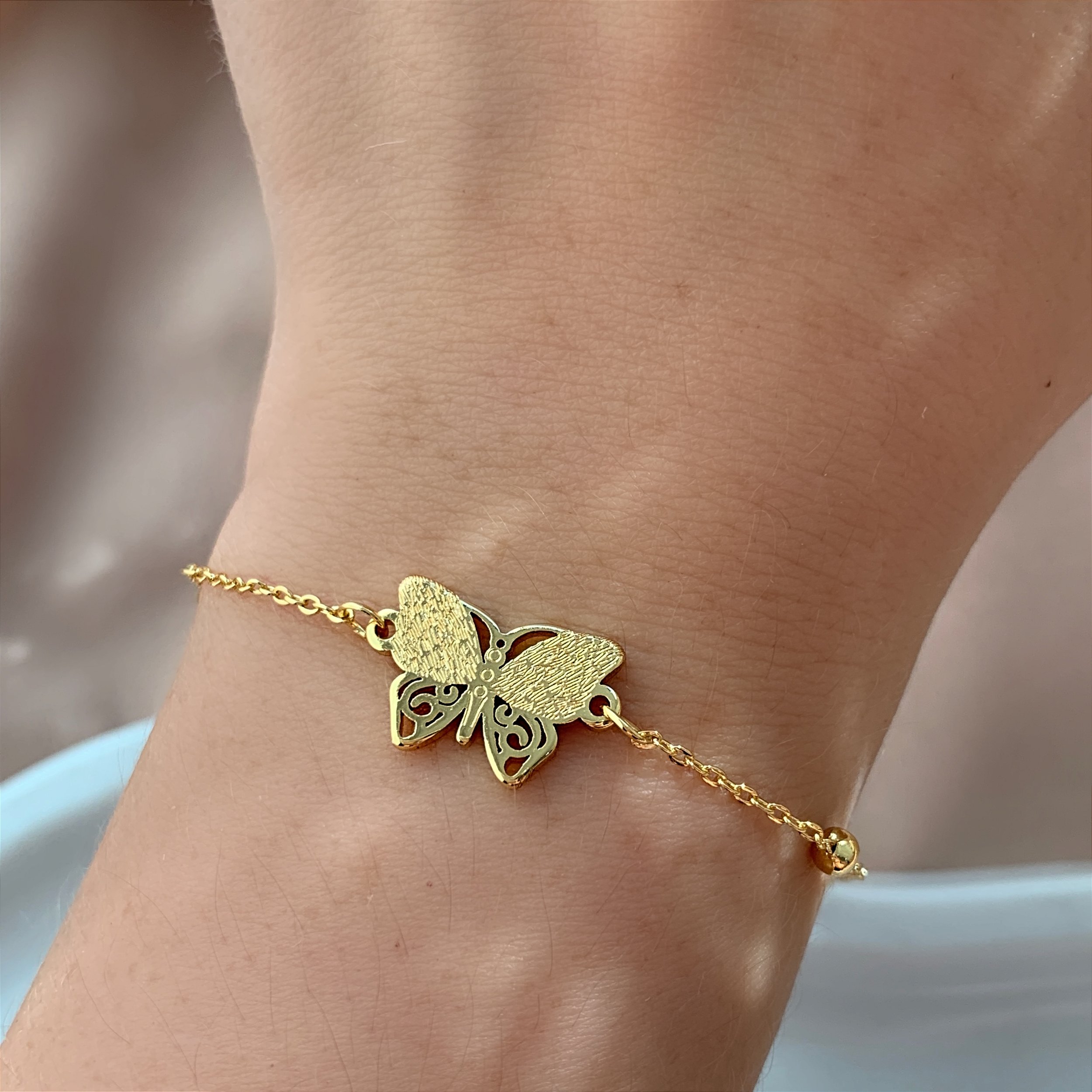 PULSEIRA CORRENTE BOLINHAS E BORBOLETA DETALHADA DOURADO AÇO 316L⭐️