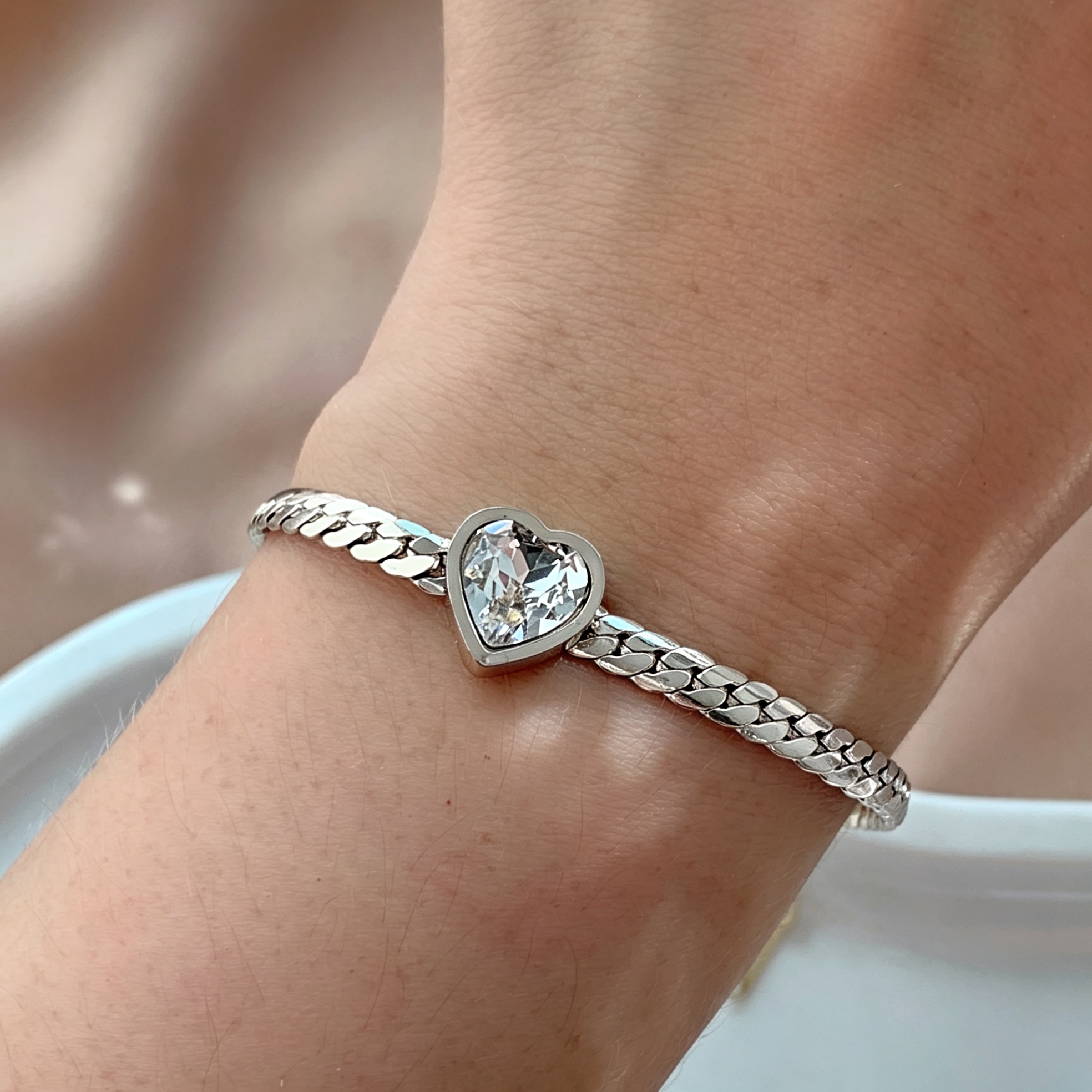 PULSEIRA CORRENTE DETALHADA COM CORAÇÃO ZIRCÔNIA AÇO 316L⭐️