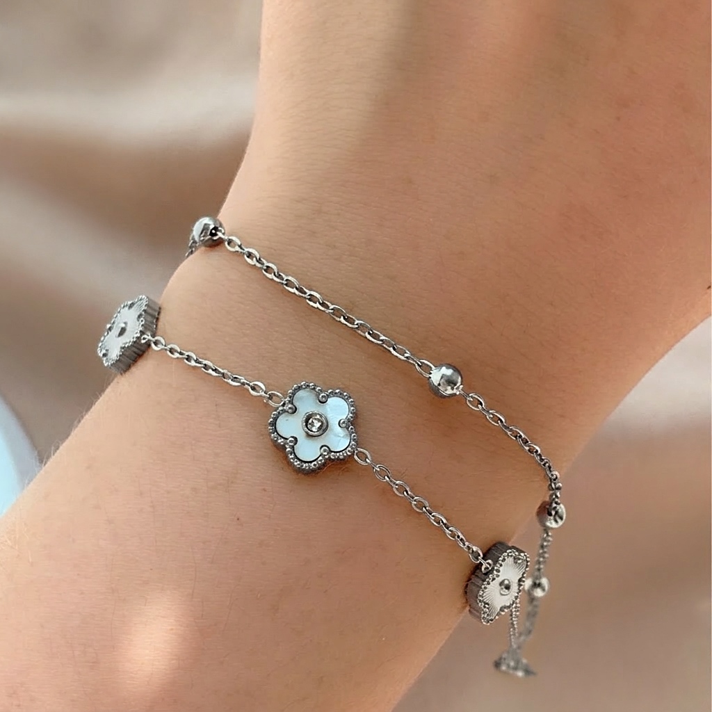 PULSEIRA CORRENTE DUPLA BOLINHAS E FLORZINHAS AÇO 316L⭐️