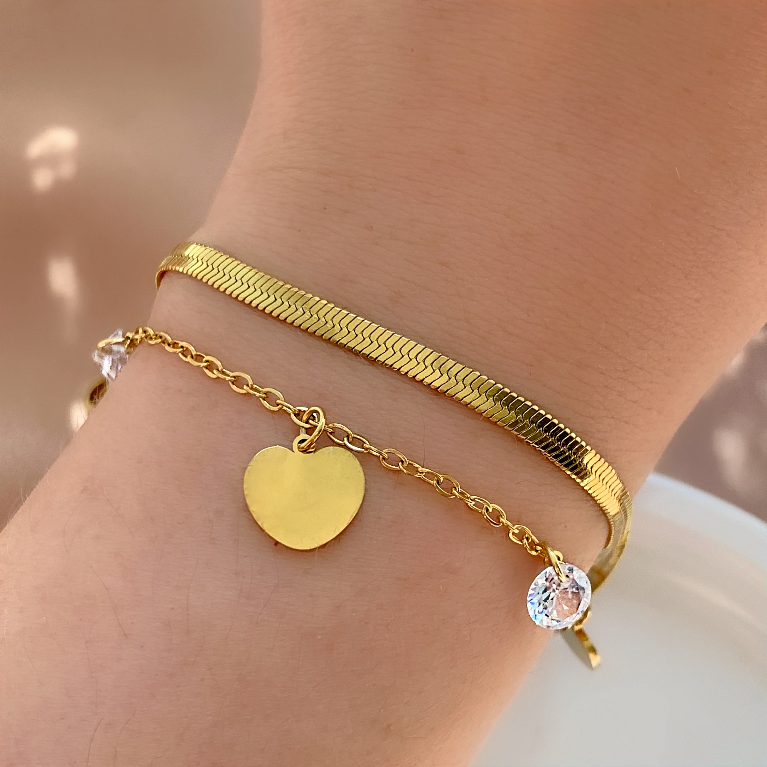 PULSEIRA CORRENTE DUPLA FITA FINA E CORAÇÕES DOURADO AÇO 316L⭐️