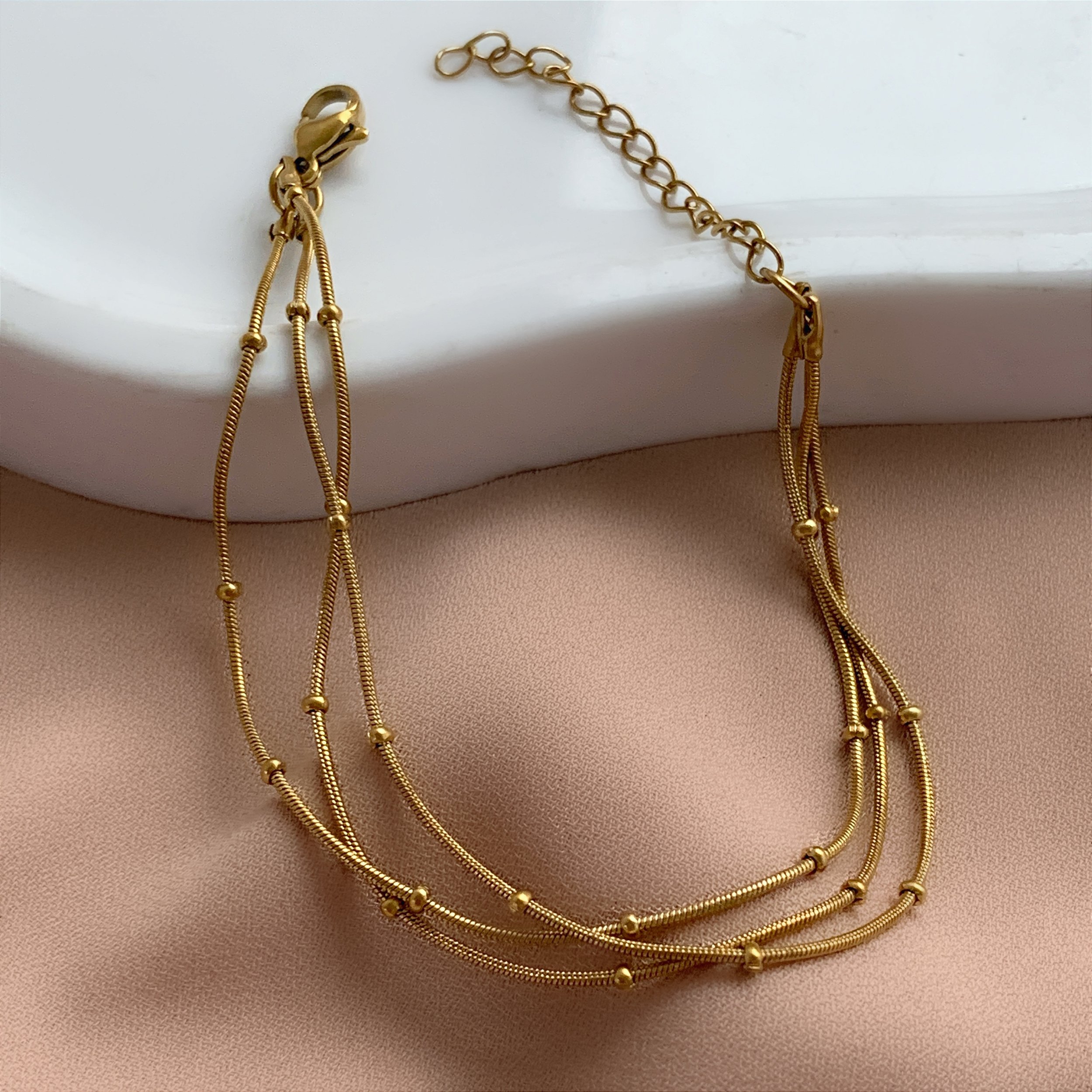 PULSEIRA CORRENTE TRIPLA FINA MINI BOLINHAS DOURADO AÇO 316L⭐️