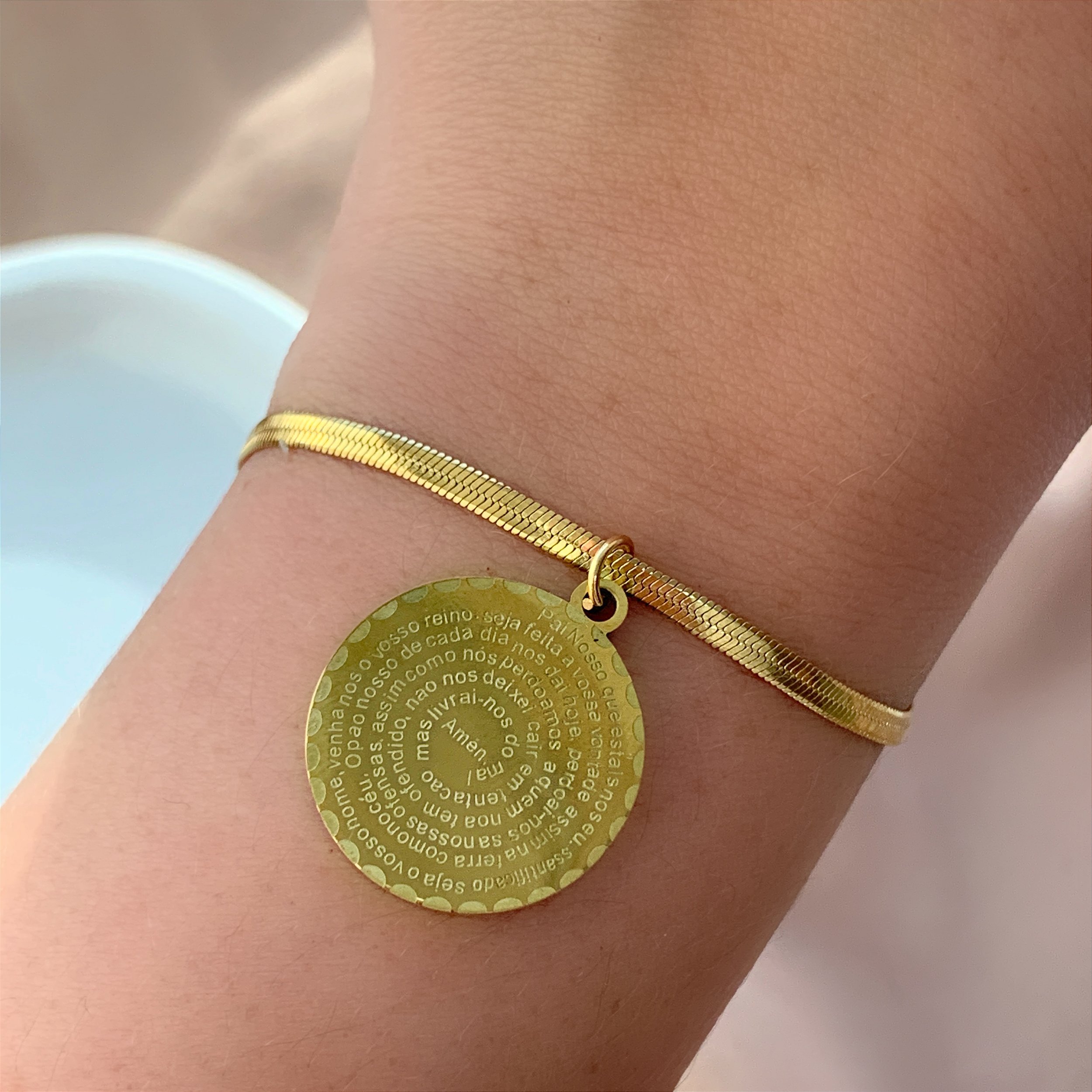 PULSEIRA FITA FINA PAI NOSSO DOURADO AÇO 316L⭐️