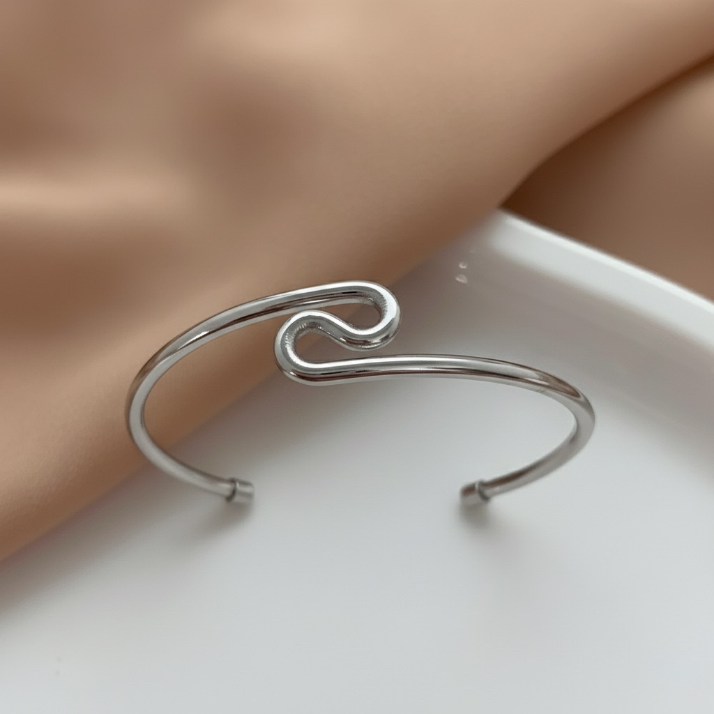 PULSEIRA INFANTIL ARO FIO DETALHE ORGÂNICO FOLHEADO A PRATA⭐️