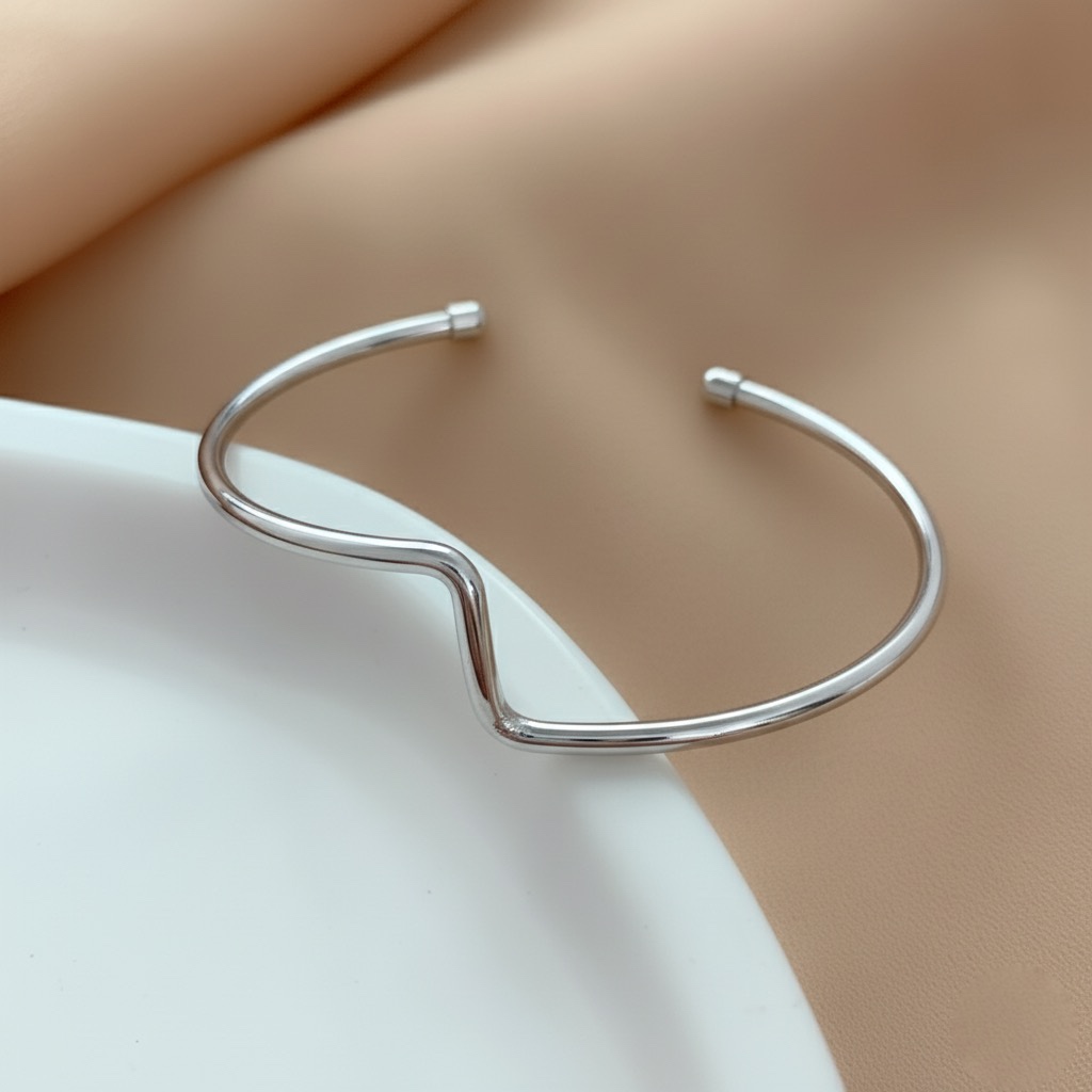 PULSEIRA INFANTIL ARO FIO GEOMÉTRICO DELICADO FOLHEADO A PRATA⭐️