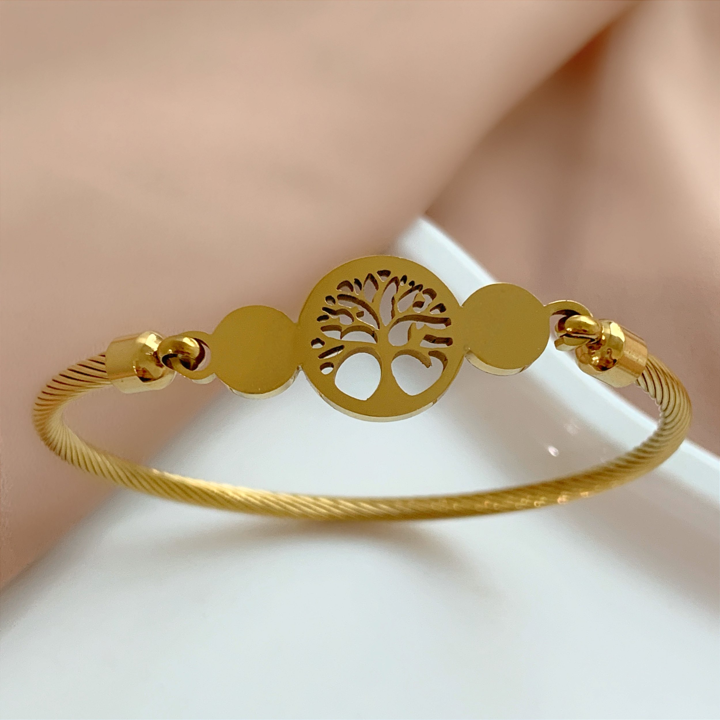 PULSEIRA/BRACELETE FIO TORCIDO ÁRVORE DA VIDA DOURADO AÇO 316L⭐️