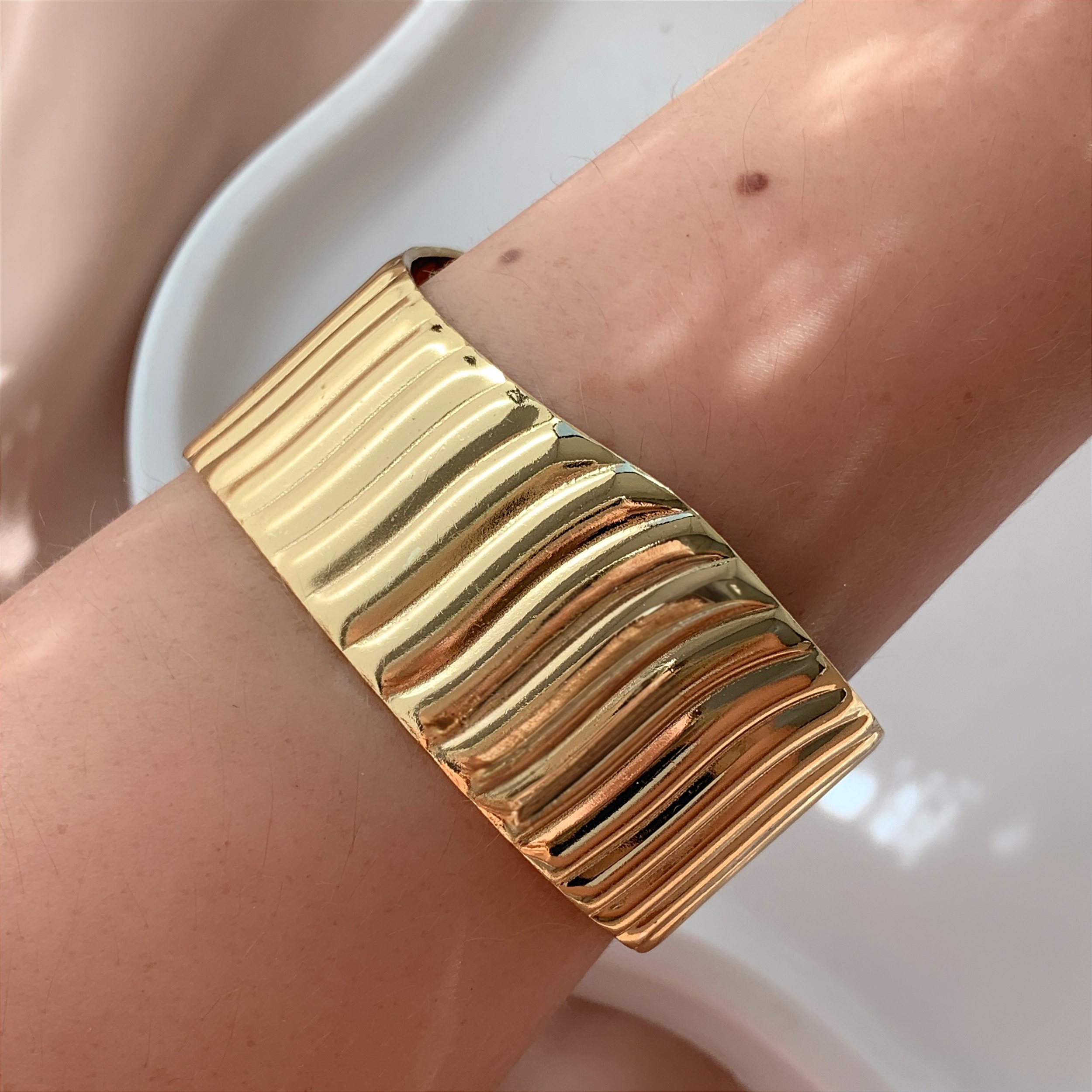 PULSEIRA/BRACELETE LARGO RISCAS DOURADO AÇO 316L⭐️