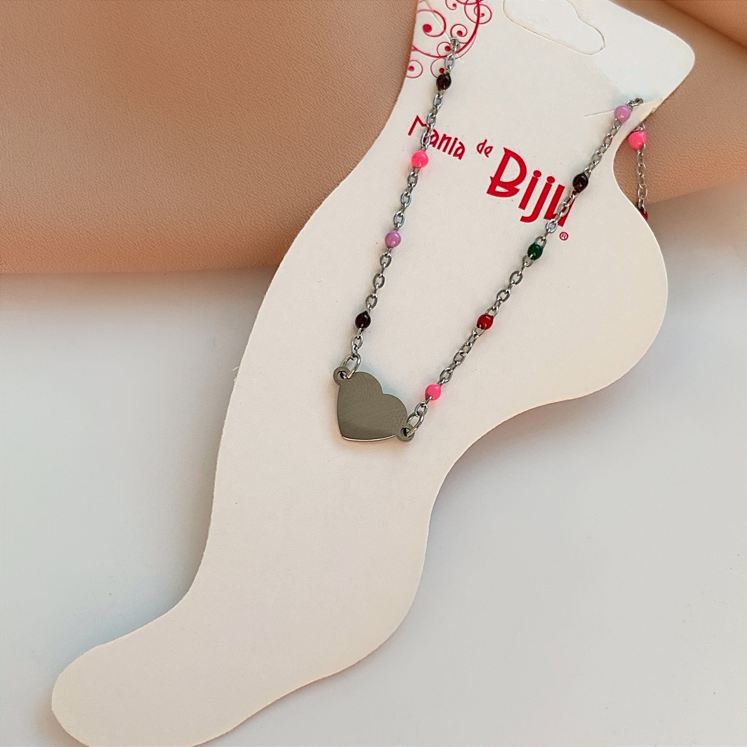 TORNOZELEIRA BOLINHAS COLORIDAS E CORAÇÃO LISO AÇO 316L⭐️